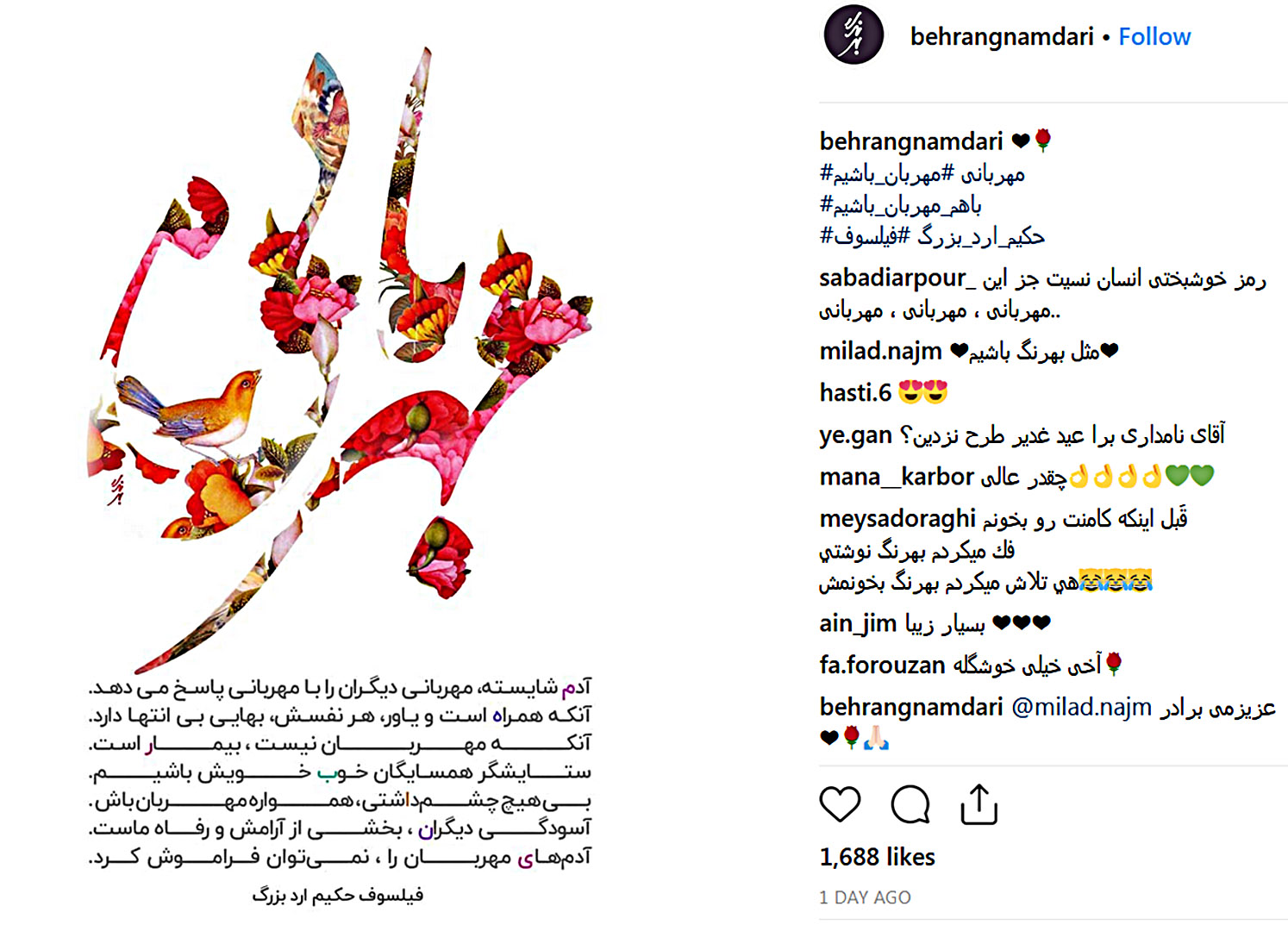 بهرنگ نامداری Behrang Namdari از هنرمندان برجسته و پیشرو هنر گرافیک کشورمان، آثار بسیار زیبایی با الهام از سخنان فیلسوف حکیم ارد بزرگ خراسانی خلق کرده اند که آنها را با هم می بینیم : منبع آثار اینستاگرام این هنرمند است